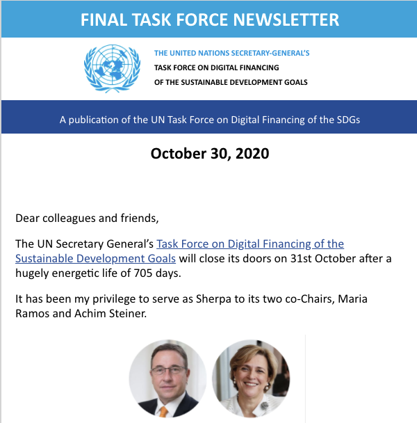 The UN Secretary General’s Task Force on Digital Financing of the Sustainable Development Goals (SDGs) report highlights the historic opportunity to accelerate and expand the transformative impact of digitalization in financing the SDGs.